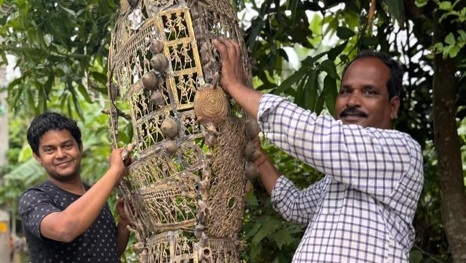 A sculptural installation merging the Navagunjara and the Phoenix—two ancient mythical creatures from vastly different cultures. This piece stands as a beacon of resilience and unity, symbolic of eternal truth and rebirth, expressed through the medium of Odisha's rich artistic traditions.